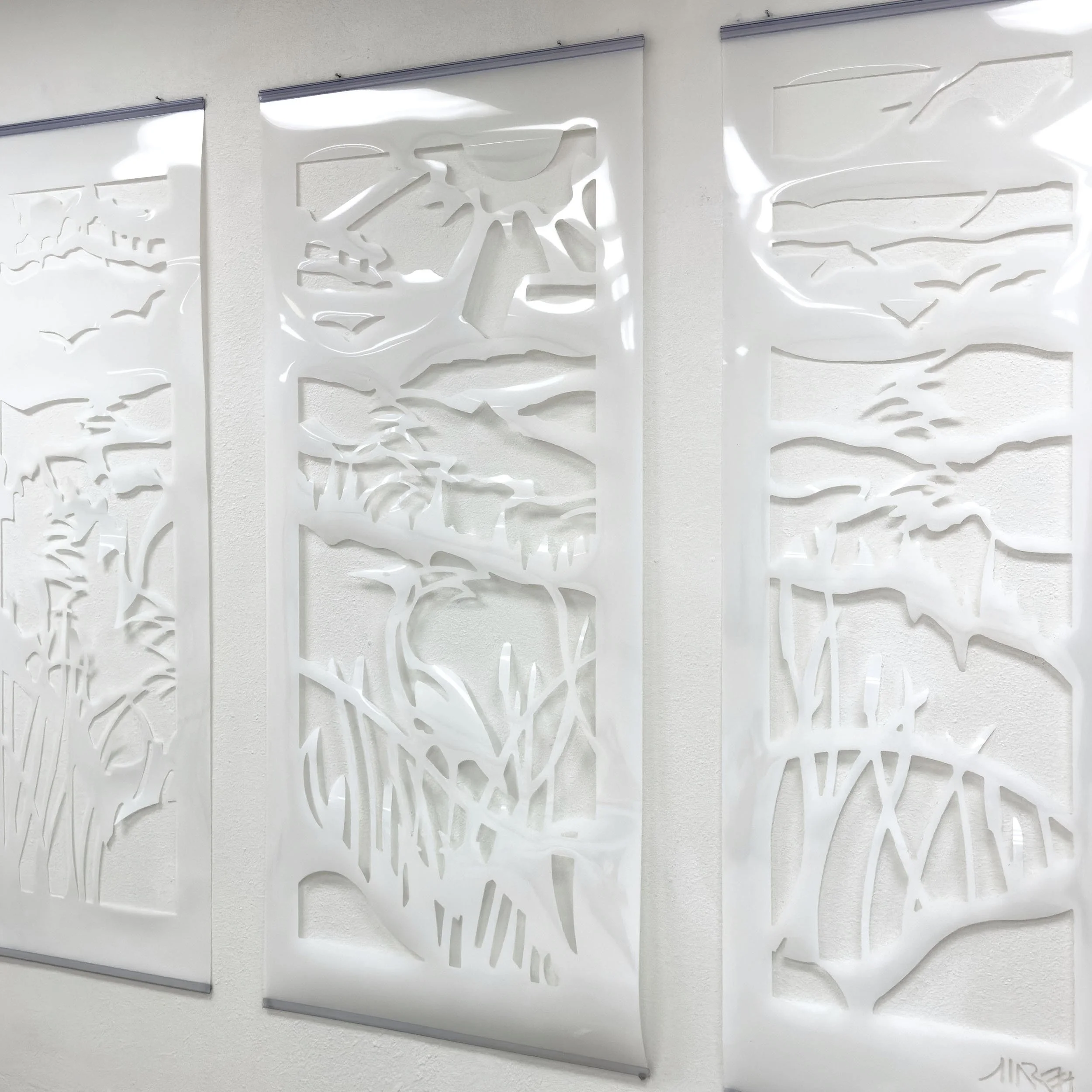 Mylar reinterpretation of Back Bay Wandering, evoking tidal wetlands in light and shadow